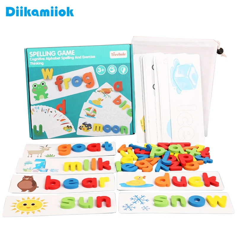 Kids Montessori Spell Word Game Wooden Toy Early Learning Jigsaw Letter Alphabet 3d Puzzle Baby Educational Toys For Children Puzzles Aliexpress